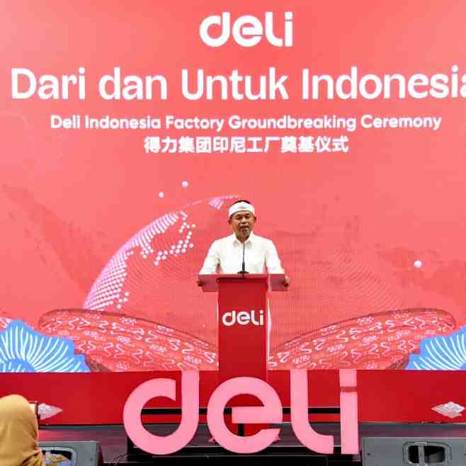 KABUPATEN KARAWANG - Gubernur Jawa Barat Dedi Mulyadi menghadiri groundbreaking ceremony pembangunan pabrik baru Deli di Kawasan Industri Artha Industrial Hill, Kabupaten Karawang, Rabu (26/11/2025).D...